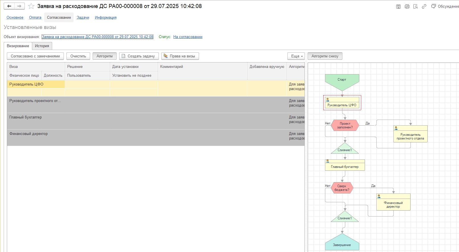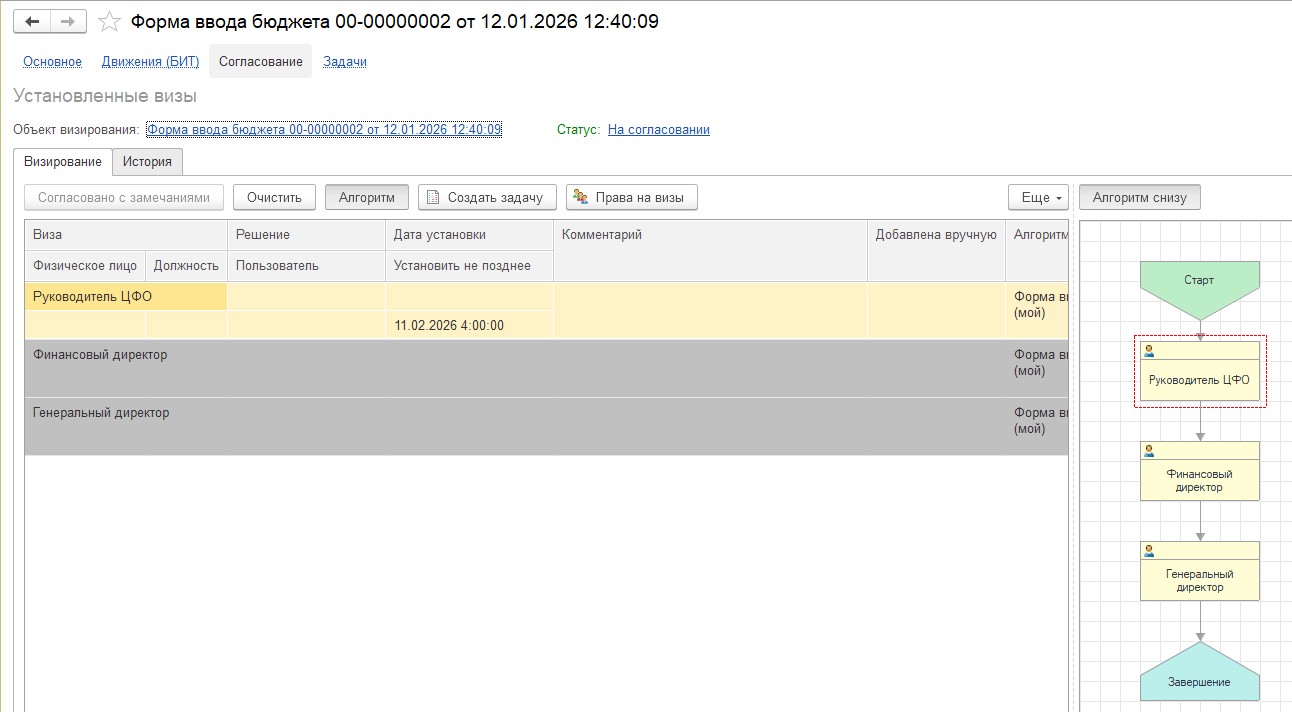 Настройка алгоритма согласования форм ввода бюджета с участием руководителя ЦФО в БИТ.ФИНАНС
