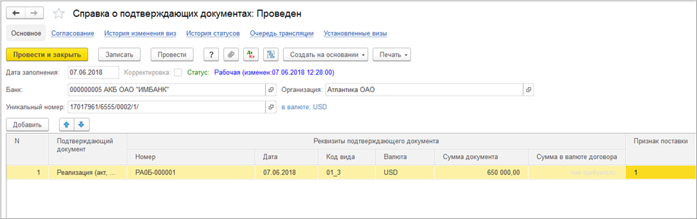 Документ «Справка о подтверждающих документах» в БИТ.ФИНАНС