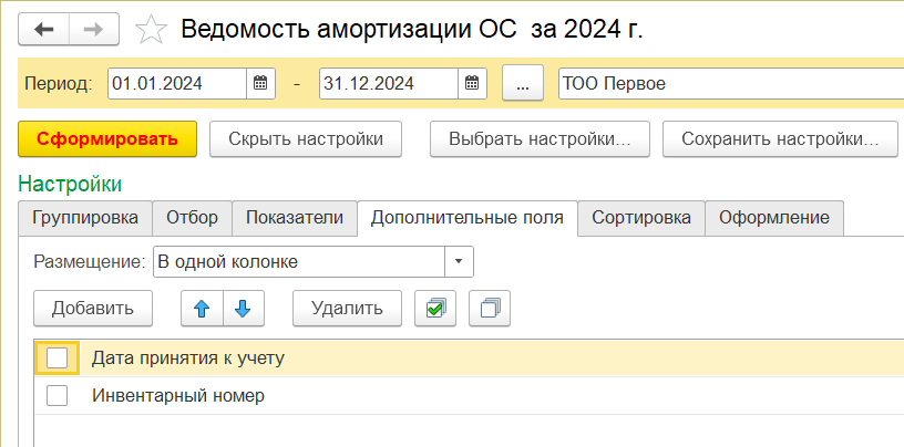 - По кнопке Показать настройки можно настроить формирование отчета: